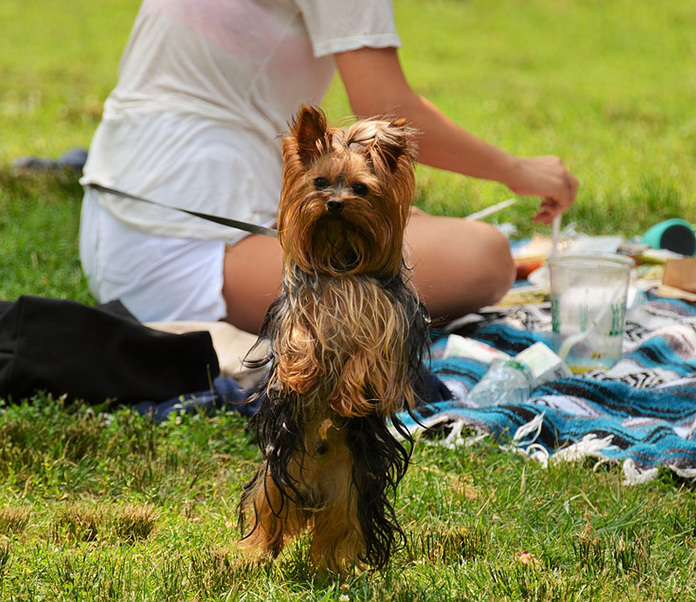 Taking a dip in cool stream or lake can be a refreshing way to cool off on a hot summer day before or after a picnic. If your dog has not been in or around water before, introduce them gradually. Let your dog wade into shallow water to become familiar with it instead of taking them straight to a pool or lake where the water can be deep and overwhelming. If you plan to take your dog on a boat, make sure they wear a properly fitted canine flotation device.